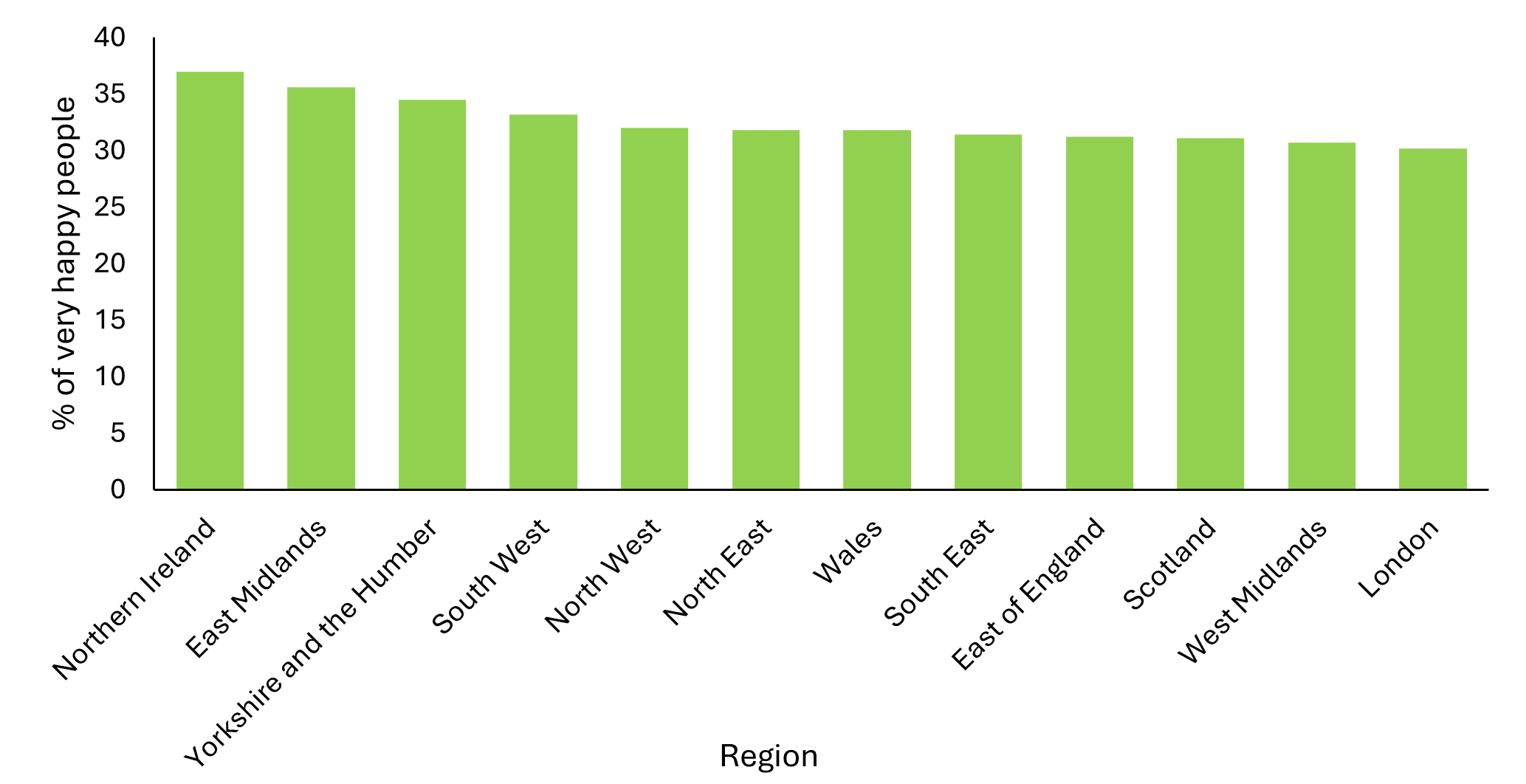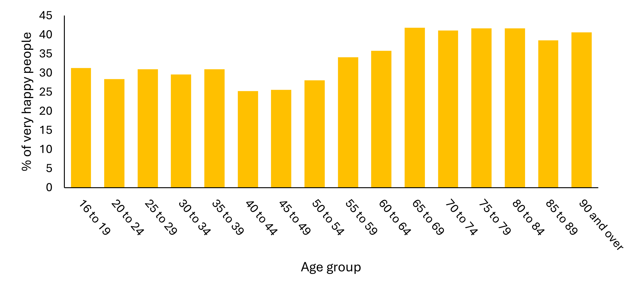 Figure 2. The UK percentage (%) of people with a very high level of happiness (score 9 or 10 out of 10).